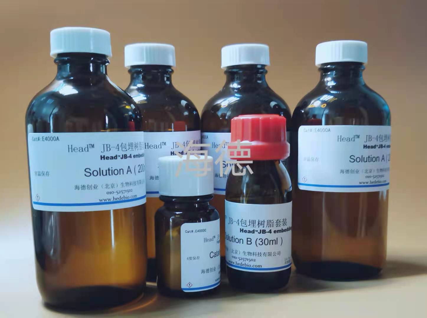 低溫包埋樹脂試劑盒Lowicryl是丙烯酸酯類樹脂,包括K4M、K11M、HM20、HM23等, 其主要特點是在低溫下(K4M:-35℃,K11M : -60°C,HM23: -80°C,HM20:-70℃)仍保持低粘度,并具有在紫外光(波長360nm)照射下聚合的能力,均非常適用于電鏡免疫組織化學。在這些包埋劑中,K4M和K11M具有親水性(極性樹脂),能較好地保持組織細胞的微細結構和抗原性,特別適于免疫細胞化學染色,且背景染色低,是超微結構定位組織細胞抗原的良好包埋劑。HM20和HM23為疏水性(非極性樹脂),圖像反差好,較適于掃描電鏡和透射電鏡的暗視野觀察標本制作。