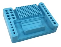 PCR實驗時不需要碎冰,直接用預先過夜冷凍的金屬臺子,可以對PCR實驗的試劑、樣品低溫保護,一般2-4°C可以保溫5個小時??梢苑胖?/span>9個1.5ml管、8個2ml管、5個0.5ml 管、一個96孔PCR板、一個50ml試劑槽。