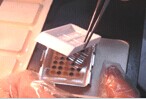 4. 組織包埋盒至于蠟塊上方,繼續(xù)注蠟至盒底部完全浸入為宜.放置冷卻.