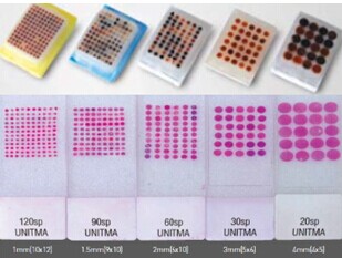 將多達(dá)150個(gè)組織塊排列在一個(gè)小小的玻片大小的蠟塊內(nèi),這就是組織芯片( tissue microarray ) ,與基因芯片,蛋白質(zhì)芯片和細(xì)胞芯片等一樣,是一種新型的高通量、快速分析多樣本的研究工具。