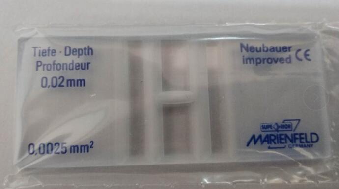 德國原裝進口Marienfeld細菌計數(shù)板,改進牛鮑型(Neubauer-improved),Petroff Hausser Counting Chamber,由特殊光學玻璃制成。每板有2個計數(shù)池,計數(shù)池深度為0.02mm,深度值誤差范圍1微米。因為受到深度限制,一般提供的產(chǎn)品是暗線型(線條蝕刻出來的)。用于細菌或者用于未稀釋標本的精子計數(shù),帶有CE標識,滿足98/79EC條款,可以用于IVD。每套里面1個板,2個蓋片。